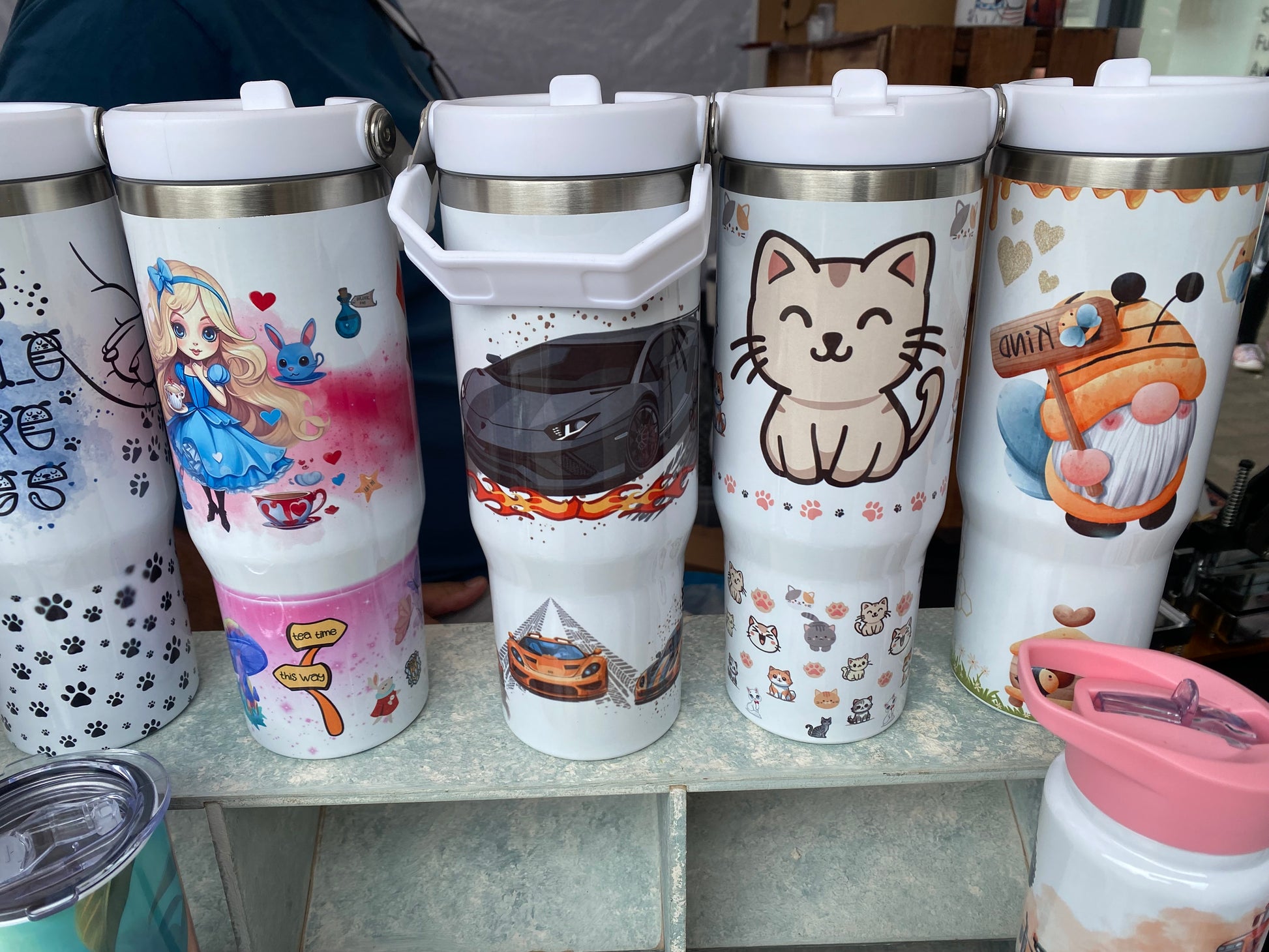 These insulated stainless steel cups are perfect for keeping your drinks at the desired temperature for longer. With a convenient handle on top, you can easily carry them around wherever you go. The leakproof design means you can relax without worrying about spills (as long as the flip straw is closed).